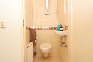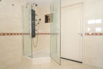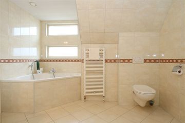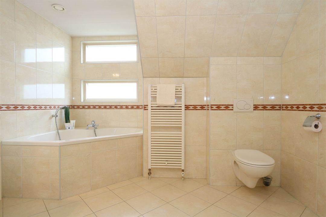 De ruime badkamer is van alle gemakken voorzien, zo heeft deze badkamer een ligbad, dubbel wastafelmeubel met lades, een tweede toilet, designradiator en een ruime douchecabine met jetstreams. Tussen de badkamer en de ingang naar de slaapkamer is de stookruimte gelegen welke is voorzien van een cv- ketel van het merk Nefit en een wasmachine-/drogeraansluiting.