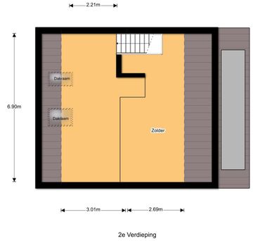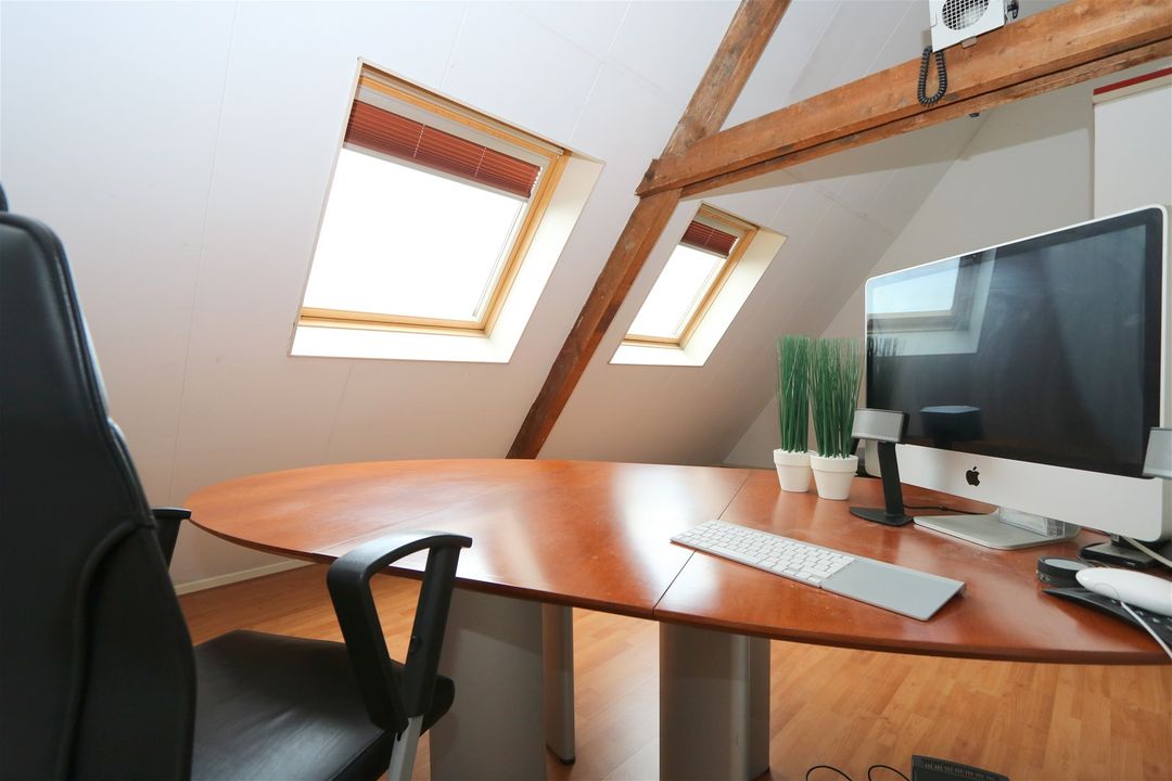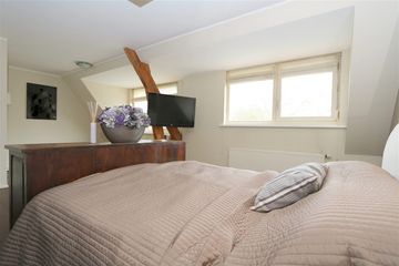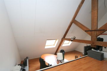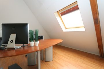 Via een vaste trap is de royale zolderverdieping te bereiken, welke nu als kantoorruimte wordt gebruikt. Deze kamer kan ook zeker als derde slaapkamer in gebruik worden genomen. Het is een fijne ruimte waar de karakteristieke houten spanten van de woning nog te zien zijn en heerlijk licht is door de twee grote dakramen die zijn geplaatst.