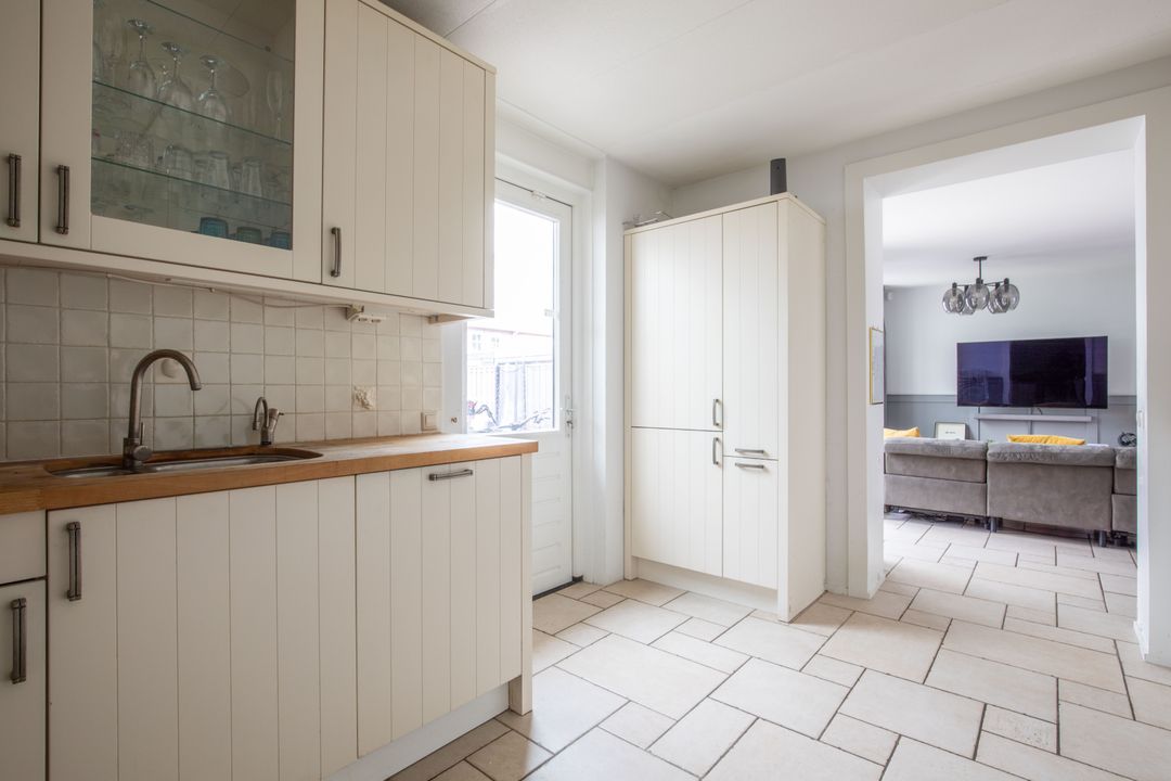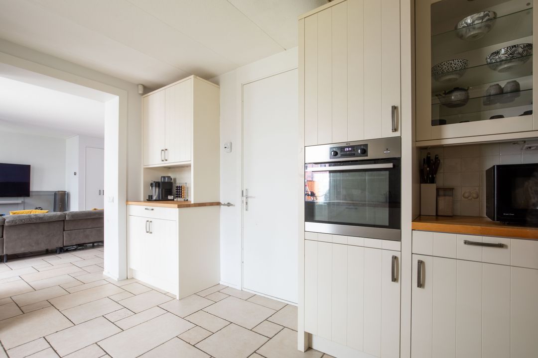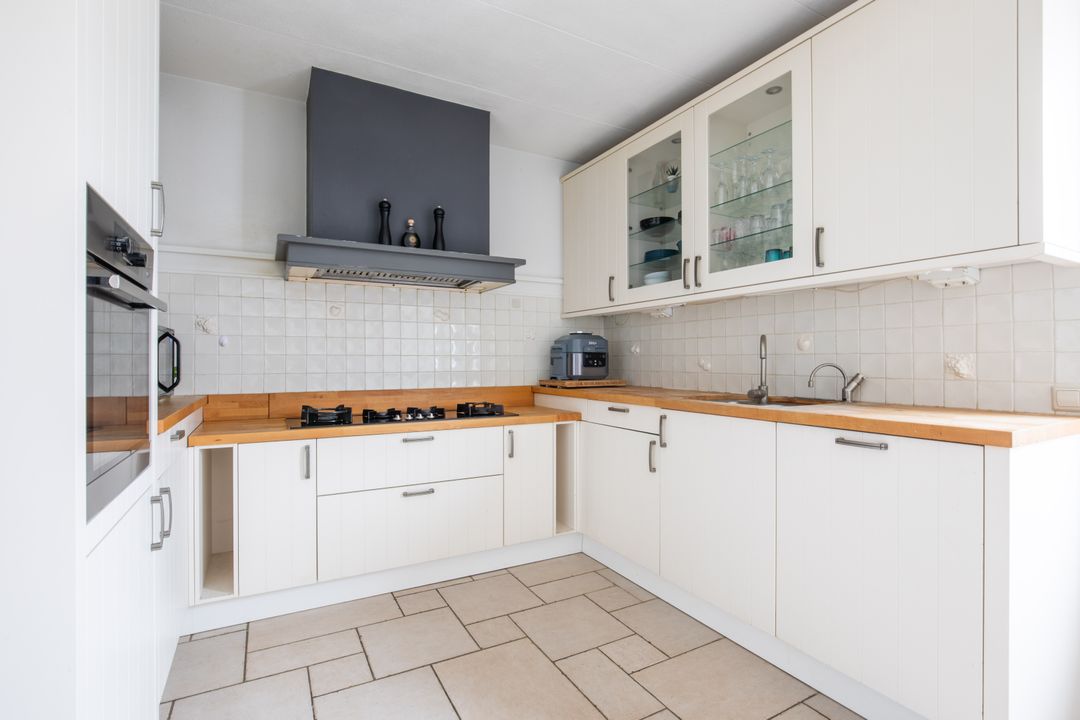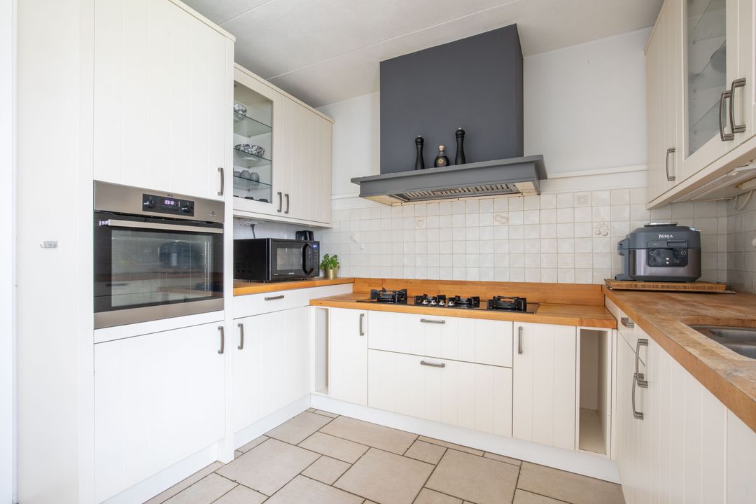 De half open keuken is van alle gemakken voorzien met een 4-pits gasfornuis, een combi-oven, een vaatwasser en een koel/vriescombinatie. De keuken heeft veel kastruimte en een leuke coffeecorner. Hier is het heerlijk kokkerellen voor familie en/of vrienden. Via de deur bereik je de achtertuin.