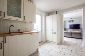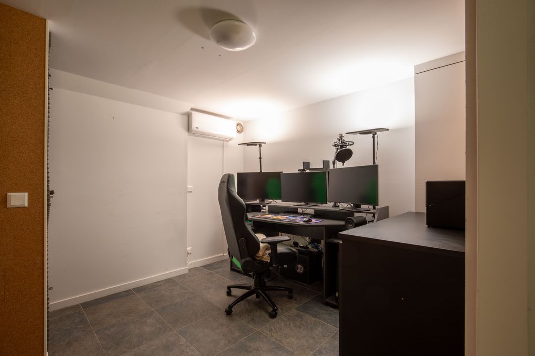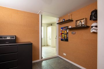 Naast de keuken bevindt zich een ruimte die door de huidige bewoner gebruikt wordt als werkkamer. Het is mogelijk om de werkkamer te betrekken bij de keuken om een grote woonkeuken te realiseren.