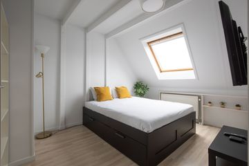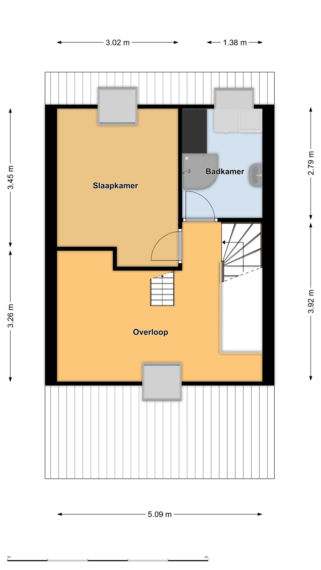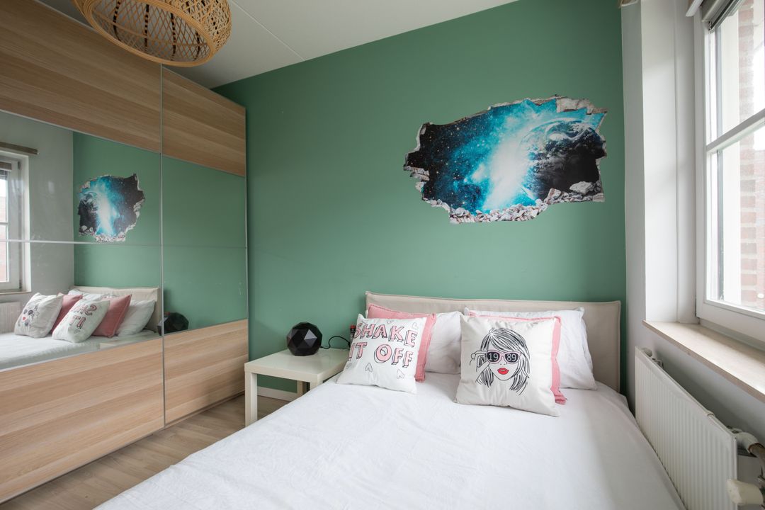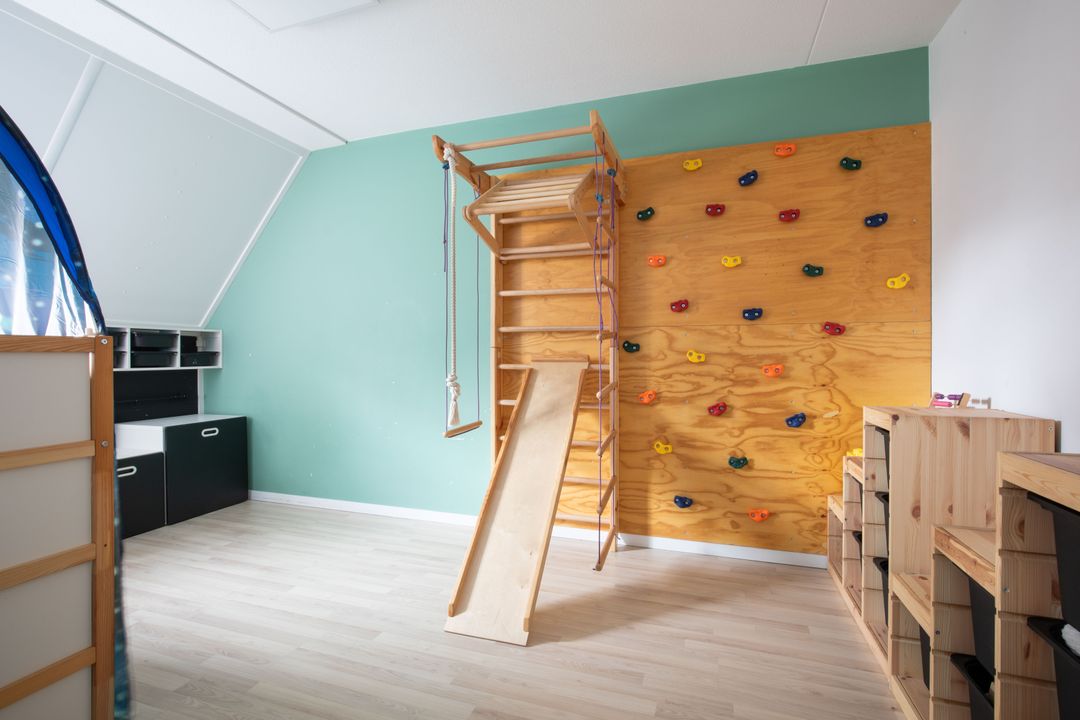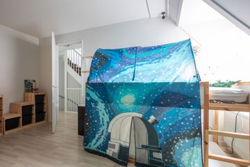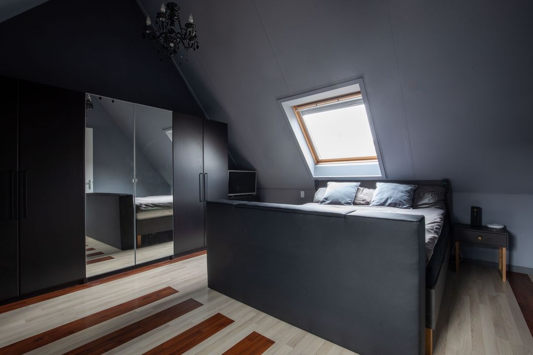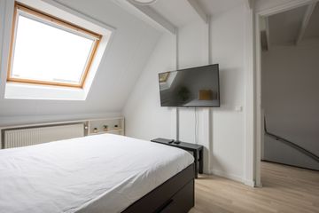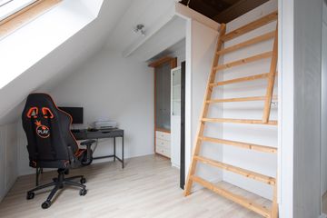 Op de tweede verdieping tref je de vierde slaapkamer, een was- en doucheruimte en een overloop met werkplek. Tevens is er een bergruimte in de nok (ca. 15 m²), deze is bereikbaar middels een vaste trap. De slaapkamer en de badkamer aan de achterzijde en de overloop/werkplek aan de voorzijde zijn allen voorzien van een dakraam. In de was/douche ruimte bevinden zich tevens een wastafel en de cv-opstelling.