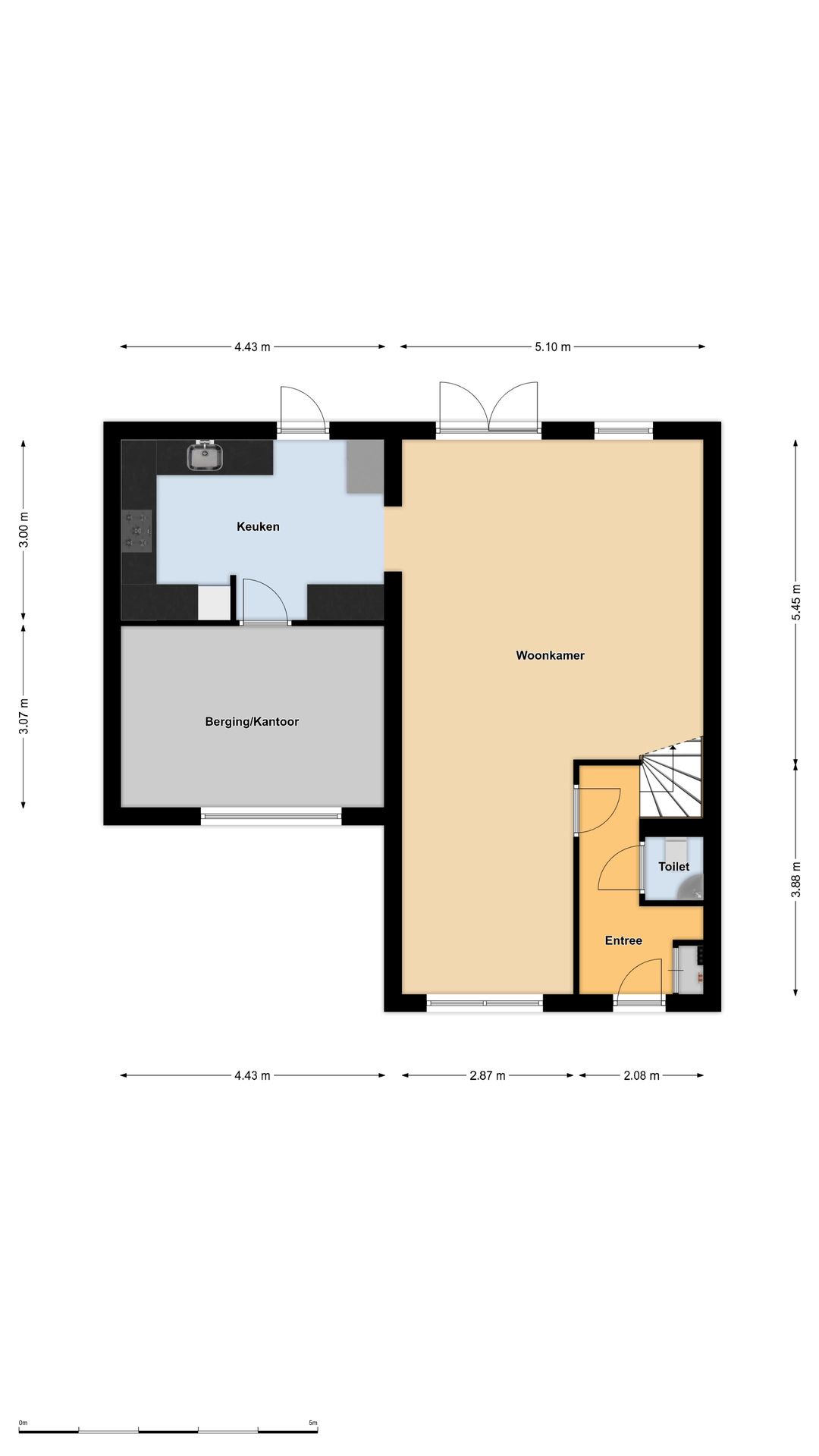 Via de voortuin bereik je de entree van de woning. In de hal tref je de meterkast, het toilet met fonteintje en de trap naar de eerste verdieping.