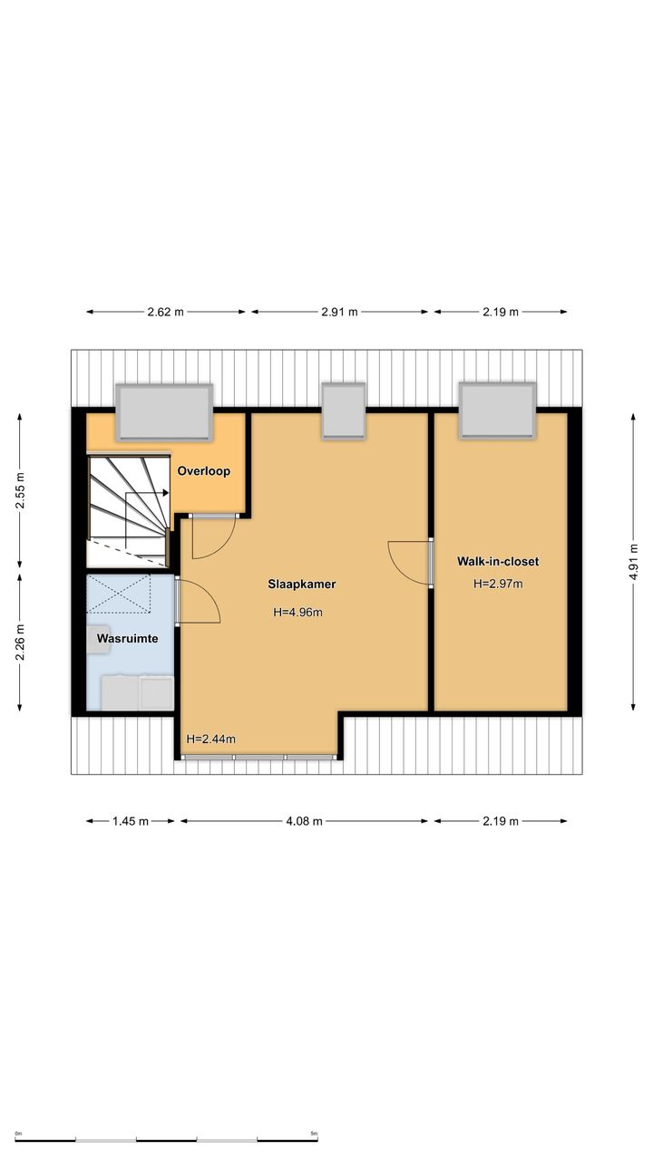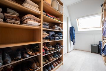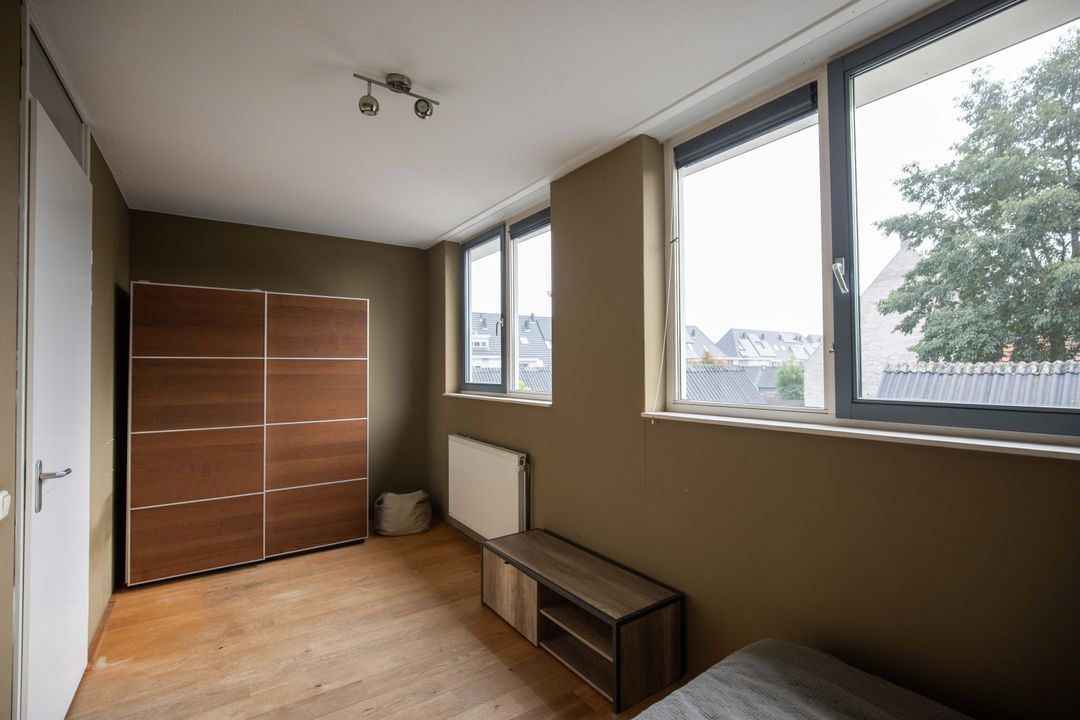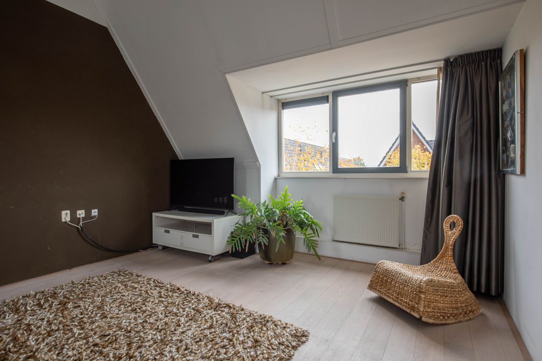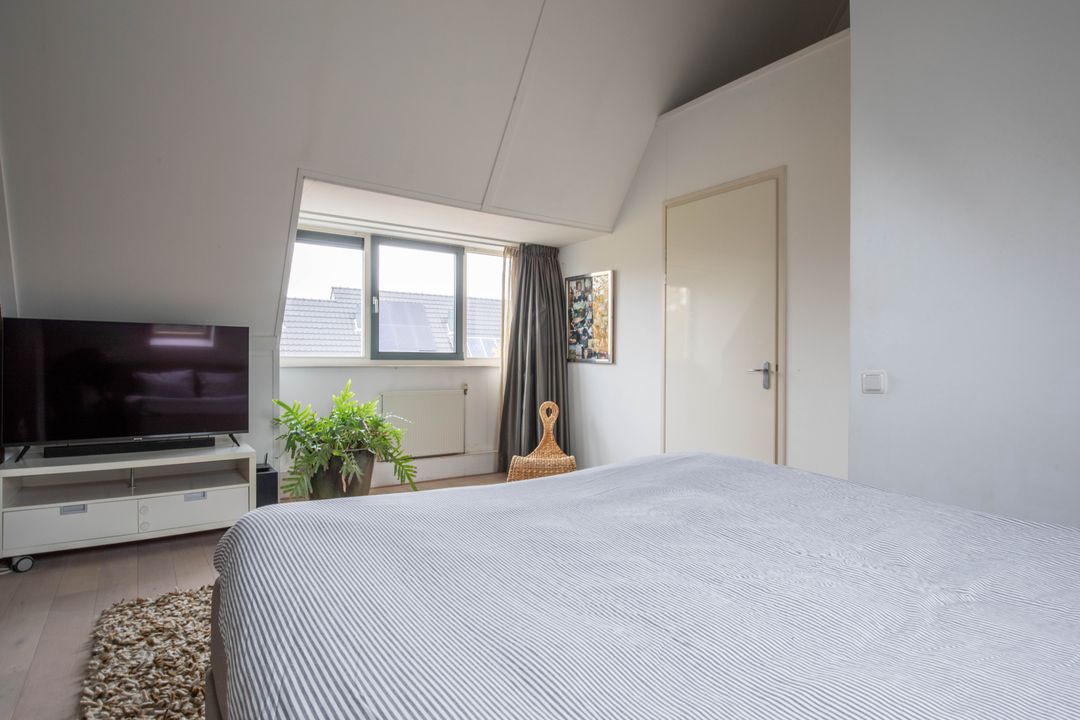 Op de tweede verdieping vind je de vierde slaapkamer. Deze ruimte is werkelijk zeer riant te noemen. Dankzij de dakkapel aan de voorzijde en het dakraam aan de achterzijde heeft de slaapkamer een fijne lichtinval. Aan ruimte voor je kleding geen gebrek met deze fijne inloopkast (boven de buitenpoort). Aan de andere zijde van de slaapkamer bevindt zich de was- en technische ruimte. In de nok is voldoende opbergruimte voor de niet-direct-nodig-spullen. De vliering boven de wasruimte is te bereiken middels een Vlizotrap.