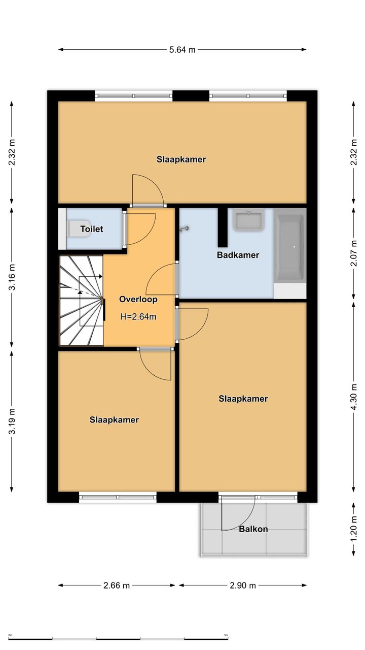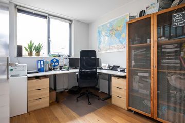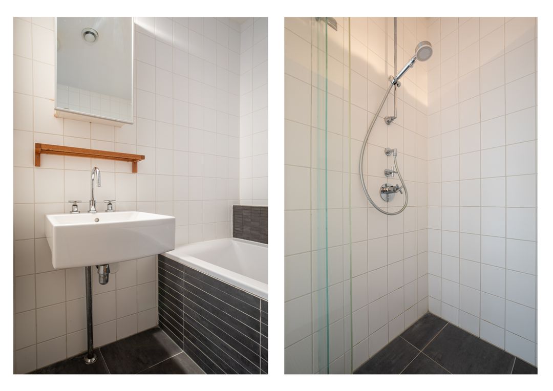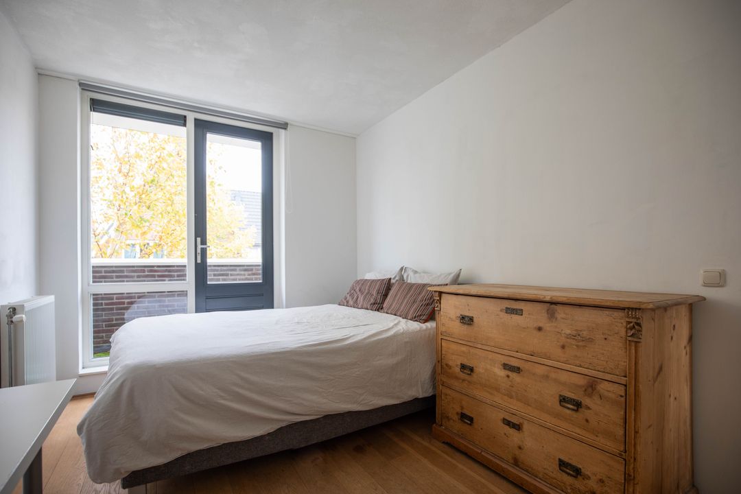 De eerste slaapkamer is gelegen aan de achterzijde en beslaat de volledige breedte van de woning. De overige twee slaapkamers tref je aan de voorzijde. Eén van de slaapkamers heeft een balkon, gelegen op het noordwesten.
