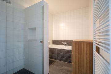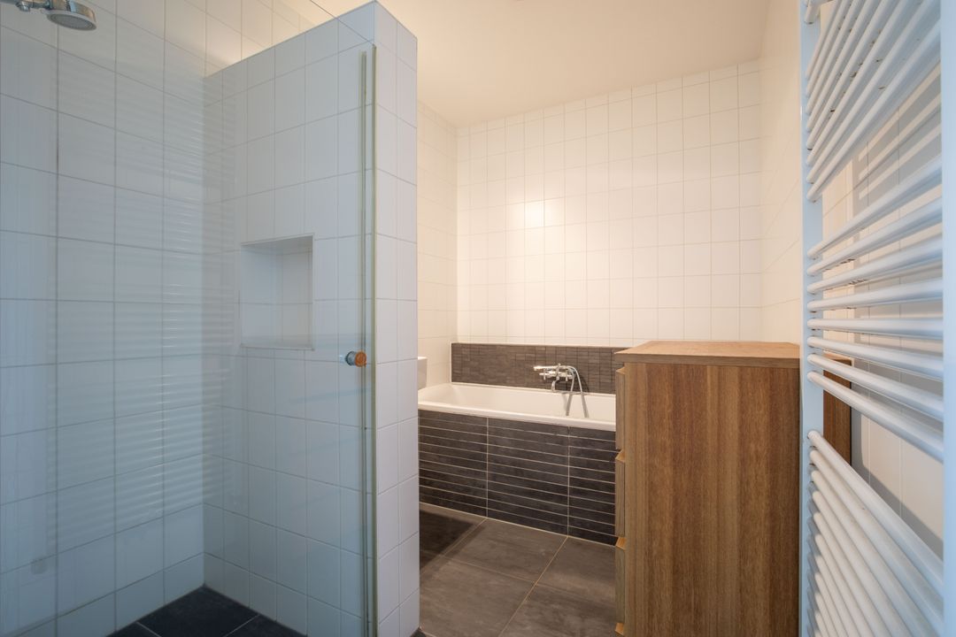 De moderne badkamer is uitgerust met een ligbad, een inloopdouche en een wastafel. De ruimte is geheel betegeld en voorzien van vloerverwarming. Het toilet is separaat op deze verdieping.