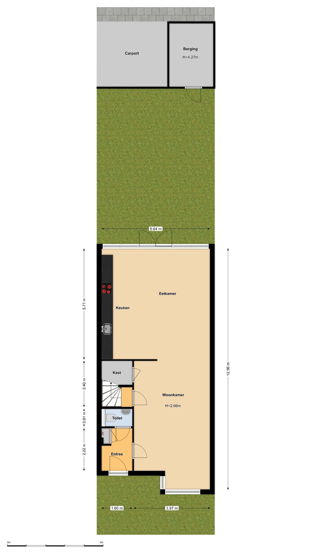– Parkeren op eigen terrein onder de carport aan de achterzijde met parkeergelegenheid voor één auto en een eigen laadpaal;