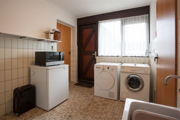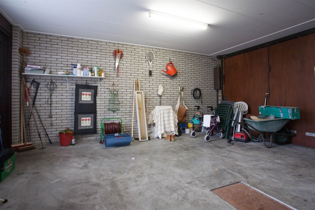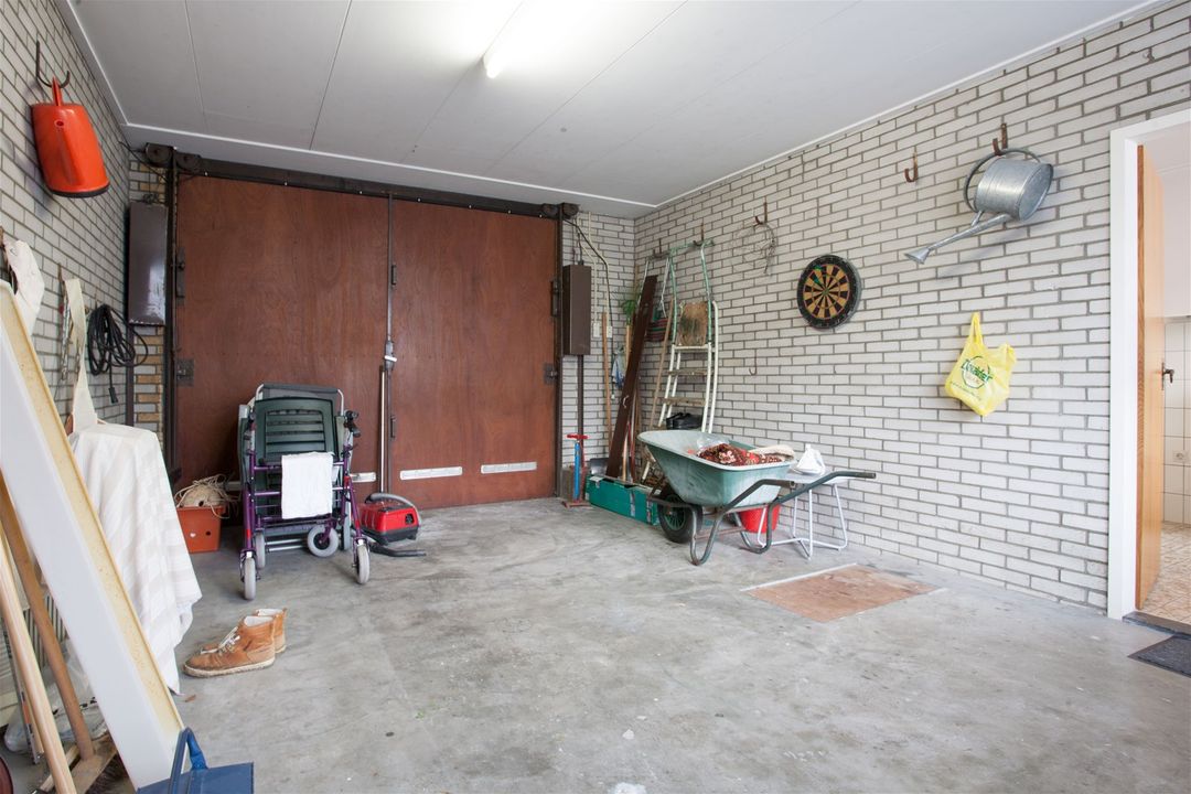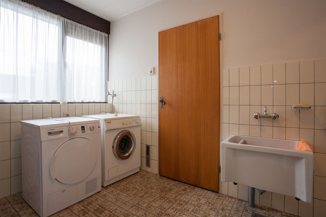 De woning is voorzien van een grote garage, bijkeuken met wasmachine aansluiting en aparte ruimte voor de c.v.-ketels. In de bijkeuken is tevens een extra deur die leidt naar de tuin.