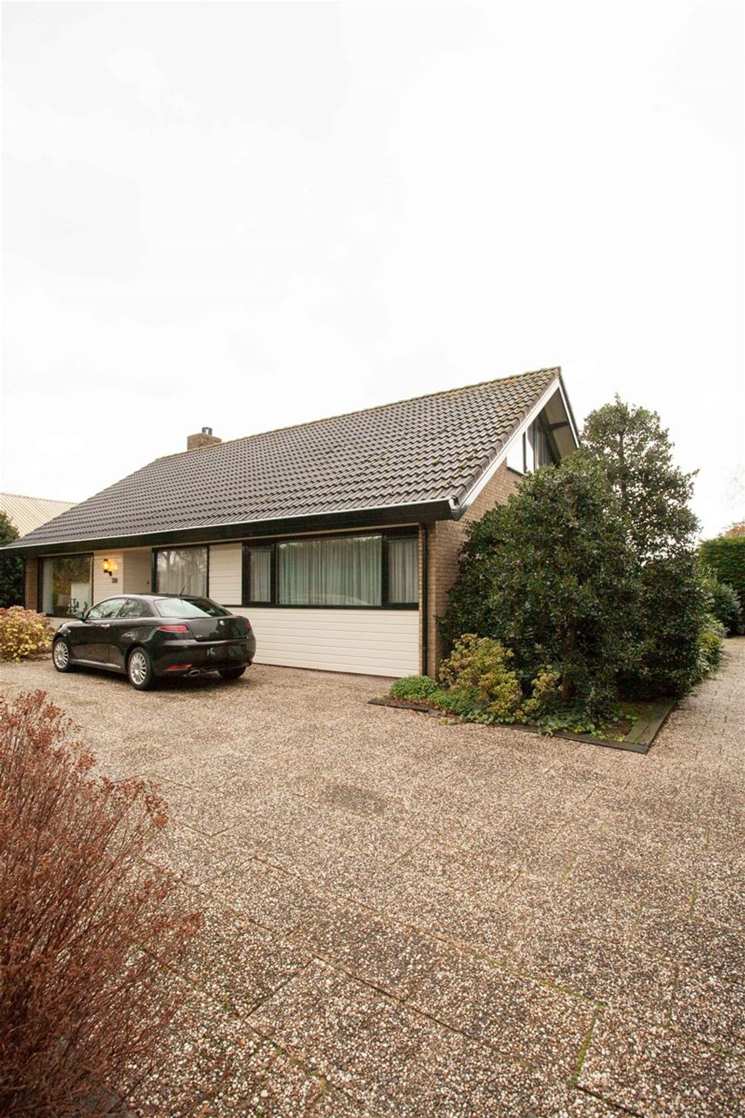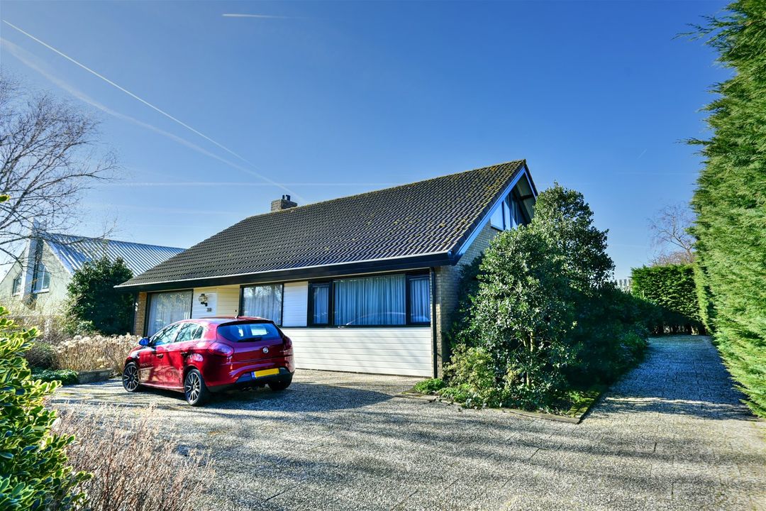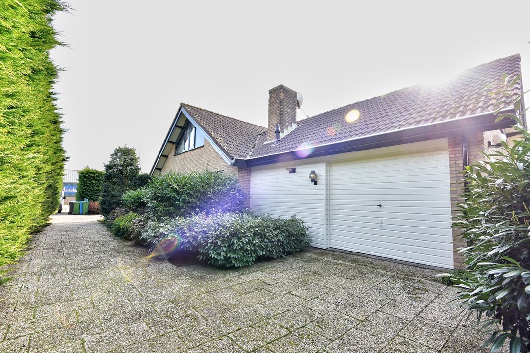 De garage is gelegen aan de rechterzijde van de woning. Hier kunt u gemakkelijk meerdere auto’s parkeren. Aan de voorzijde van de woning is ook ruimte voor een parkeerplaats.