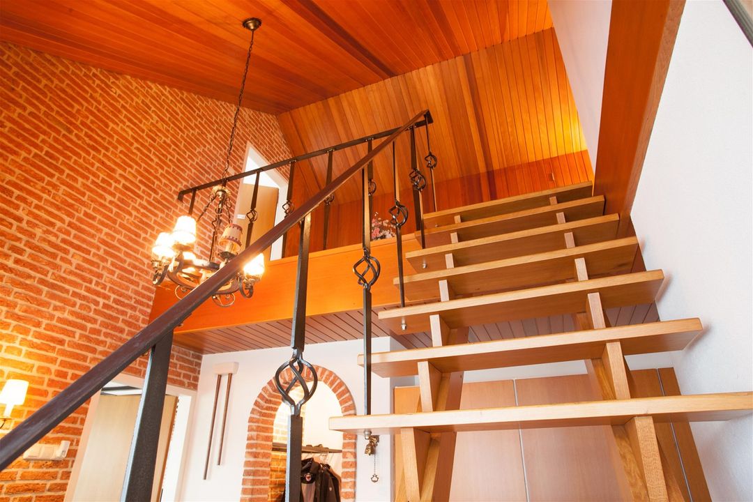 Via een open trap komt u op de overloop van de eerste verdieping.