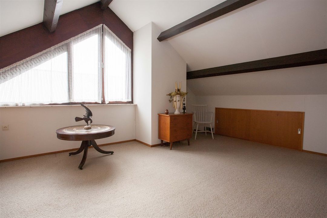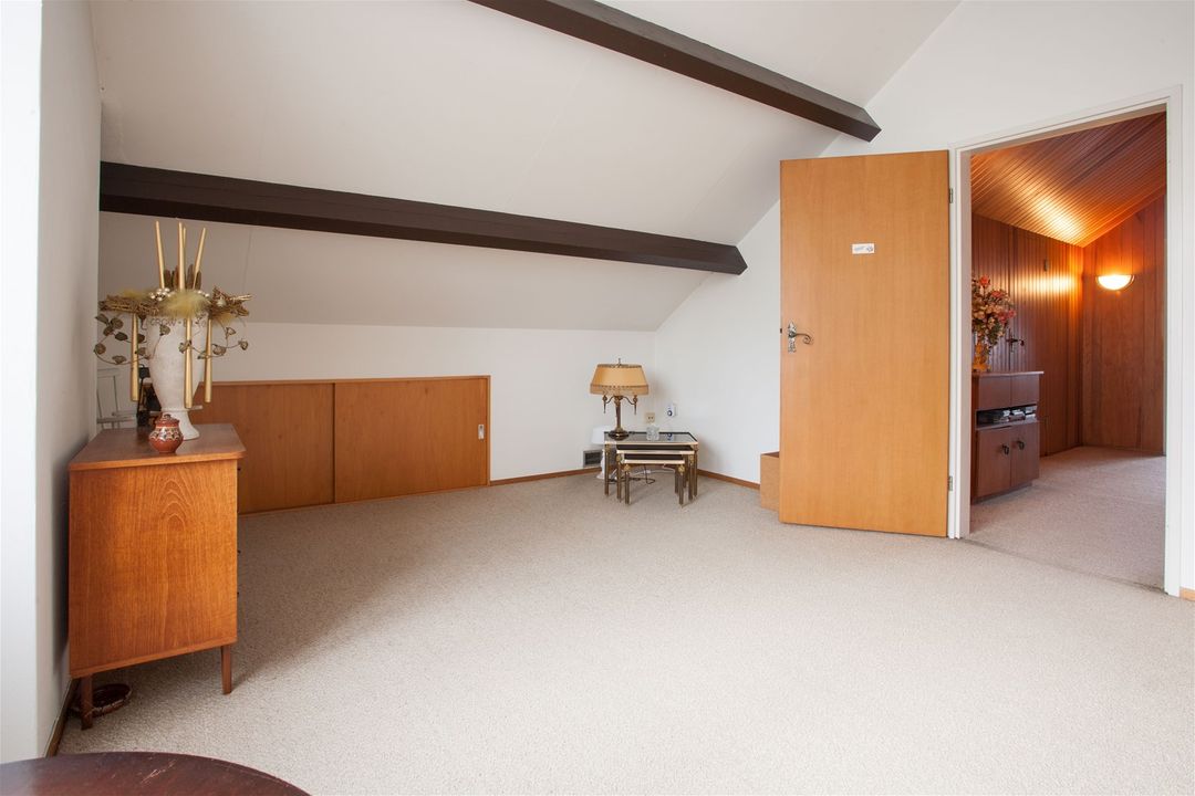 Deze is voorzien van veel kastruimte aan de schuine zijde van het dak. Ook is er nog een diepe kast naast de trap. Aan opbergruimte zult u zeker geen gebrek ervaren in deze woning.