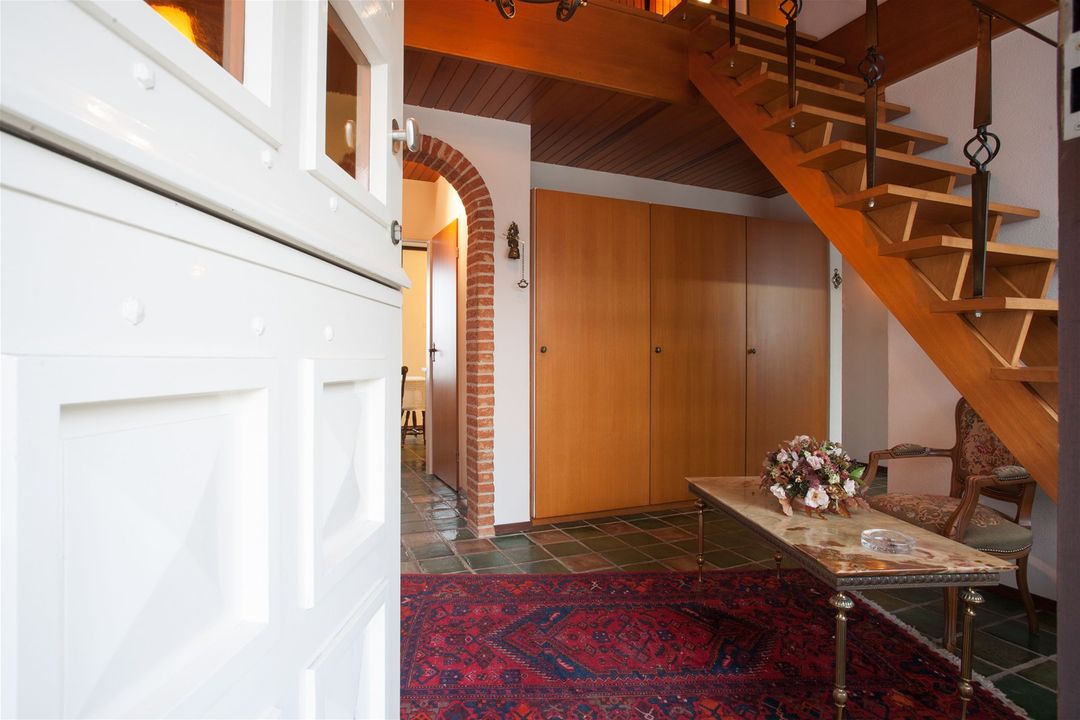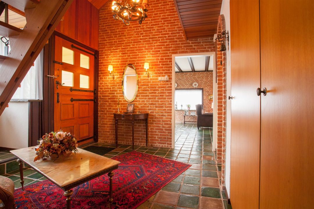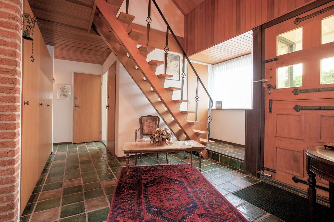U ervaart gelijk een heel ruimtelijk gevoel door de grote en vooral hoge entree. De trap naar de verdieping bevindt zich in de hal en er is een aparte garderobe ruimte.