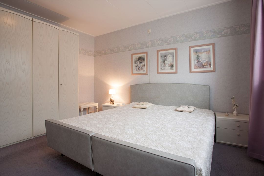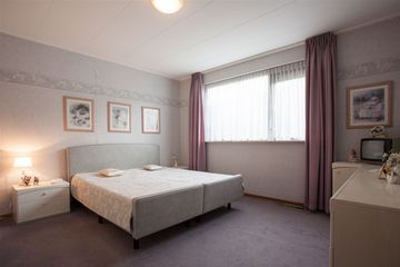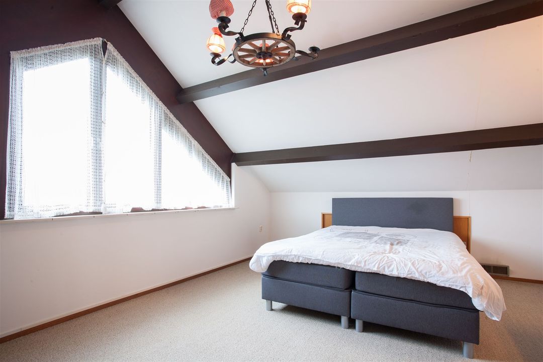 De eerste slaapkamer bevindt zich aan de zijkant van de woning op de begane grond en is zeer groot van formaat. De slaapkamer is voorzien van neutrale vloerbedekking.