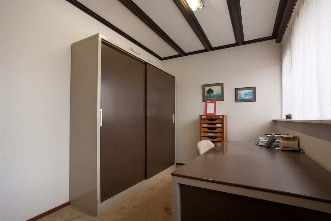 Aan de voorzijde van de woning bevindt zich een extra kamer die nu gebruikt wordt als werkkamer maar die uiteraard ook als slaapkamer geschikt is. Ook treft u een toilet op de begane grond.