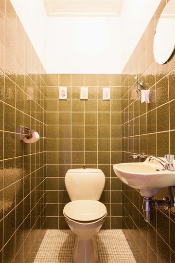 De badkamer bevindt zich eveneens op de begane grond en is voorzien van een ligbad, douche gelegenheid en wastafel met spiegelkast.