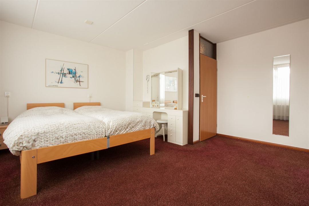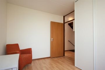 De tweede slaapkamer: De tweede slaapkamer is gelegen aan de voorzijde en voorzien van Novilon. Dezelfde vloer is doorgelegd op de overloop. Dit geeft een mooi ruimtelijk effect. De vaste kast met schuifdeuren biedt voldoende opbergmogelijkheden.