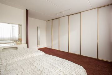 De master bedroom: De riante master bedroom is gelegen aan de achterzijde over de volle breedte van de woning. De grote inbouwkast met schuifdeuren is gesitueerd over de volle lengte van de kamer. Hier kunt u uw kleding en linnengoed met gemak in kwijt!