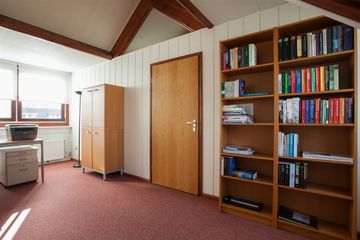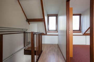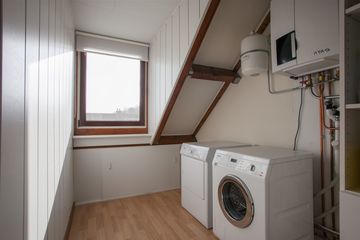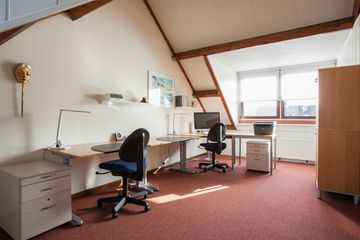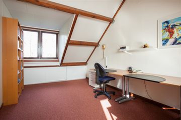 De zolder: Hier weer zo’n netjes afgewerkte ruimte. De derde slaapkamer, thans in gebruik als werkkamer, is gelegen over de volle lengte van de woning en heeft twee dakkapellen. Op de overloop is de cv-ketel geïnstalleerd en tevens de aansluiting voor de wasmachine en droger.