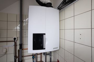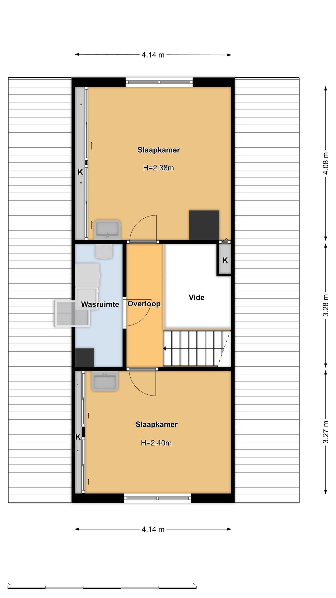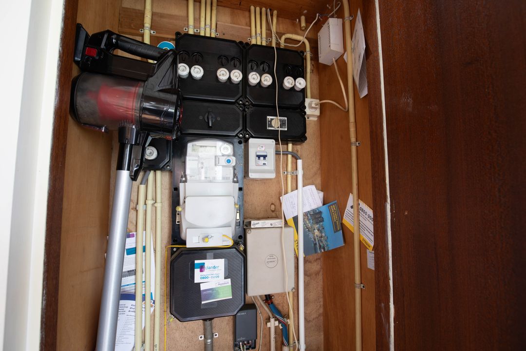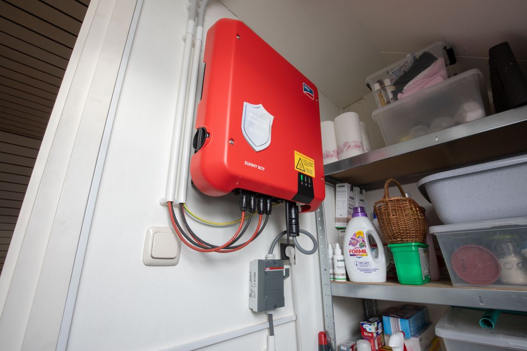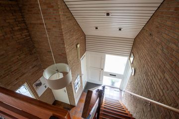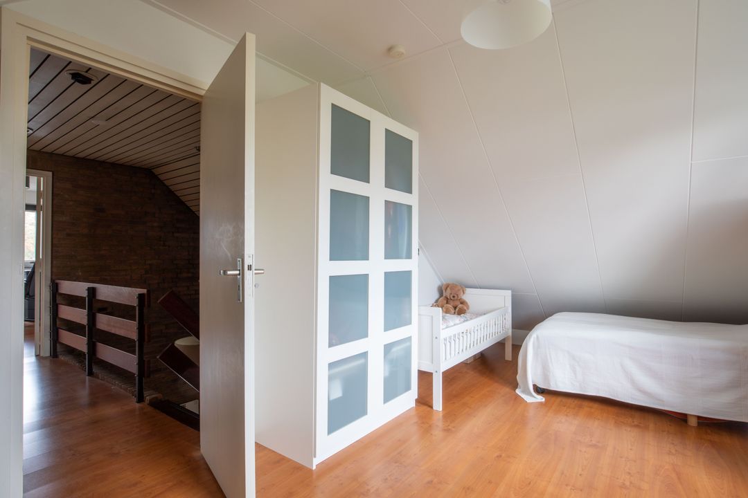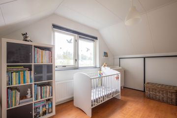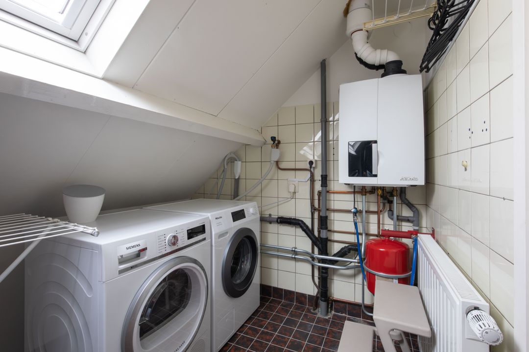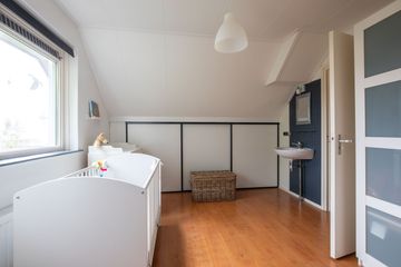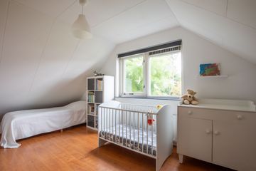 Via de trap bereikt u de eerste verdieping, waar zich twee riante slaapkamers bevinden. Op de overloop is de wasruimte gelegen met aansluitingen voor de wasmachine, alsmede de opstelling van de cv-ketel en de omvormer van de in 2020 geplaatste twaalf zonnepanelen.