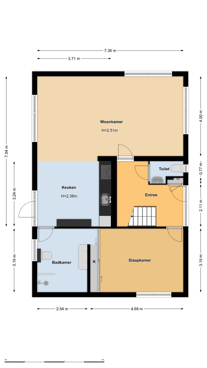 Bij binnenkomst van de woning betreedt u de royale hal met garderobe, toilet met fontein, meterkast (inclusief waterontharder) en de trapopgang naar de eerste verdieping. Vanuit de hal heeft u directe toegang tot zowel de woonkamer als een slaapkamer op de begane grond, ideaal voor levensbestendig wonen.