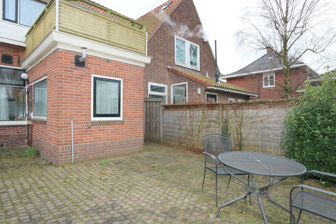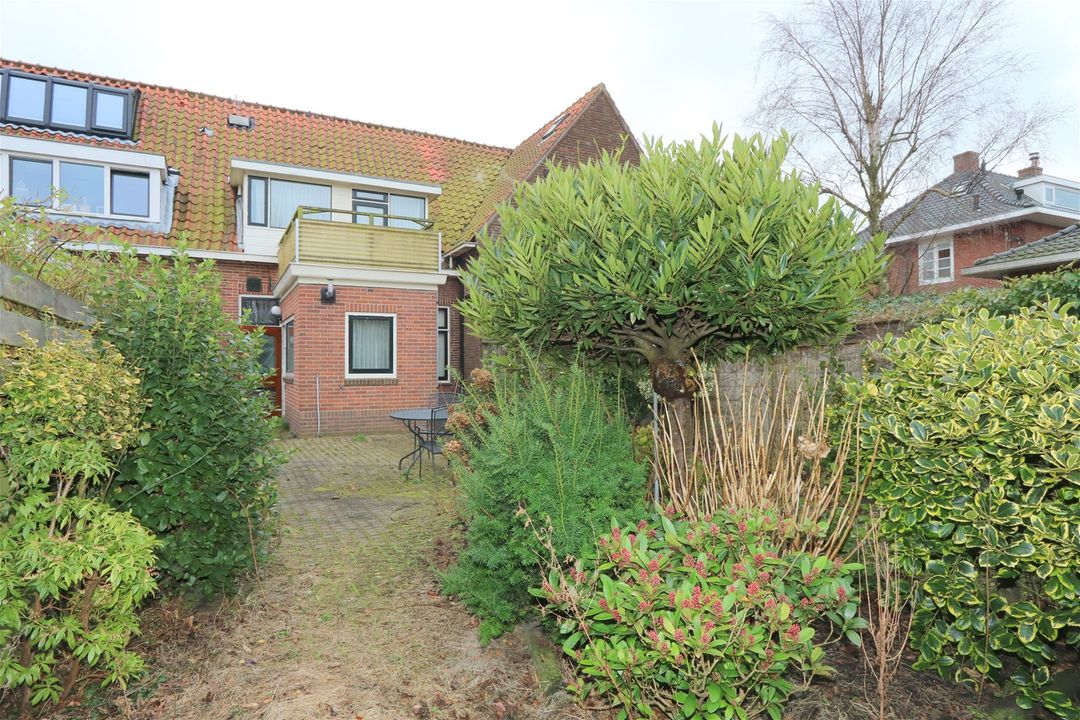 Via de bijkeuken kom je in de diepe tuin met vrij uitzicht. Doordat er geen bebouwing aan de achterzijde van de woning is, kan je hier heerlijk rustig vertoeven in de zomer.