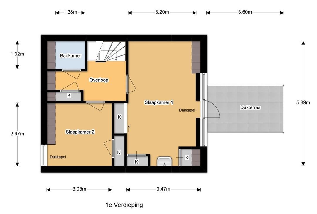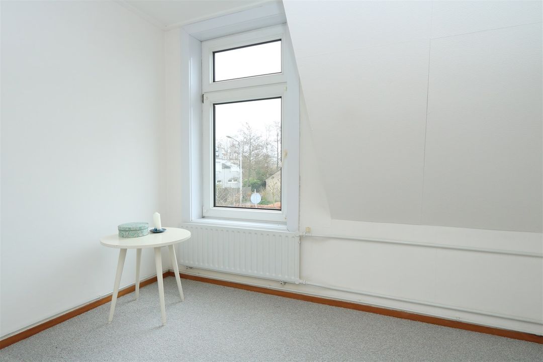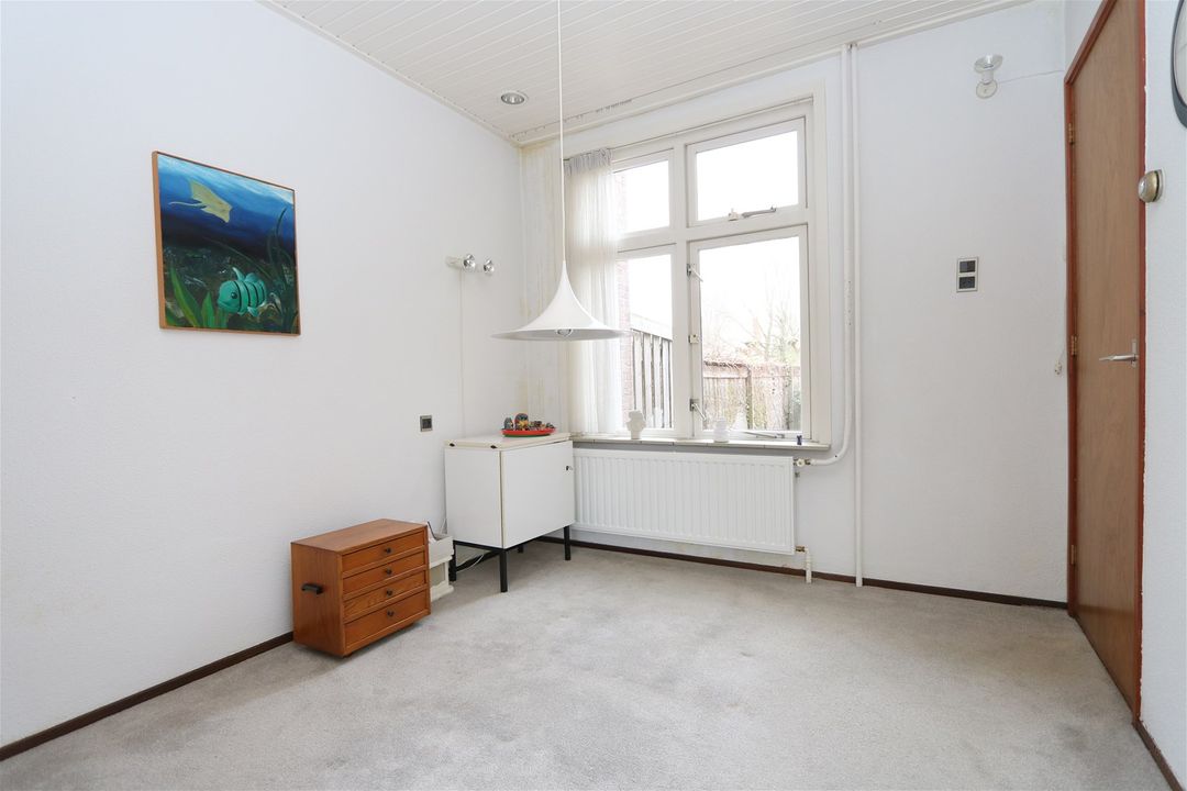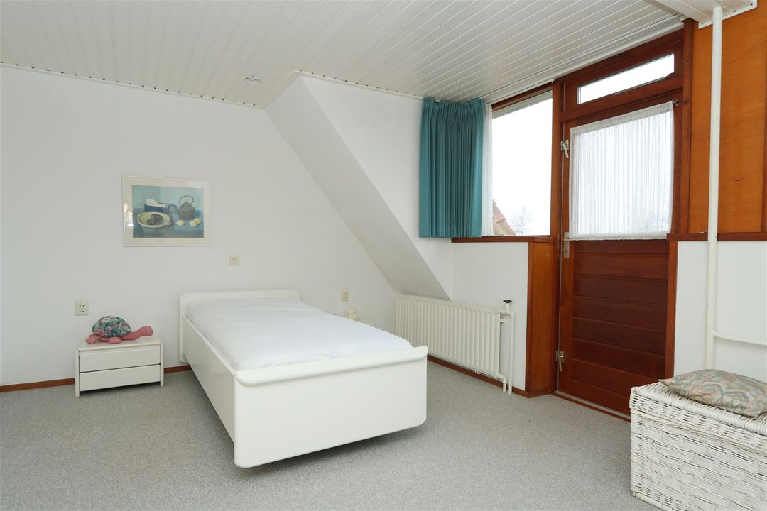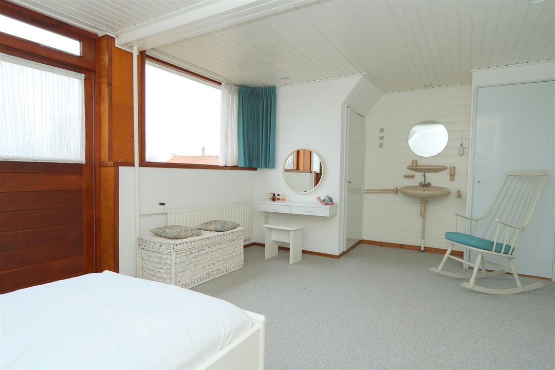 Op de eerste verdieping zijn twee slaapkamers gesitueerd, waarvan de slaapkamer aan de achterzijde de hoofdslaapkamer is. Deze slaapkamer is voorzien van een wastafel en diverse inbouwkasten en vanuit hier is er toegang tot het dakterras boven de aanbouw. De doucheruimte bevindt zich eveneens op deze verdieping.