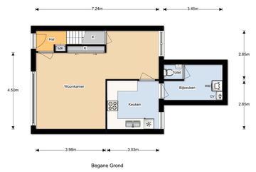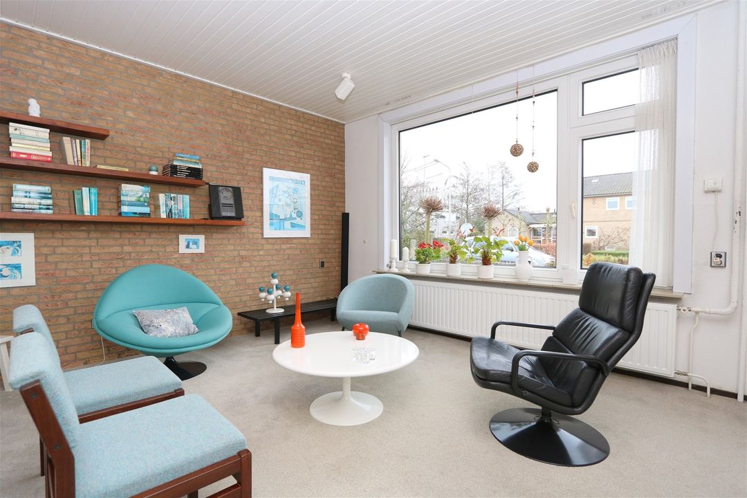 Entree aan de voorzijde. Vanuit de hal kom je in de woonkamer. Deze beschikt over inbouwkasten en een trapkast. Aan de voorzijde is een grote raampartij (kunststof kozijnen met dubbele beglazing) waardoor de woonkamer lekker licht is.