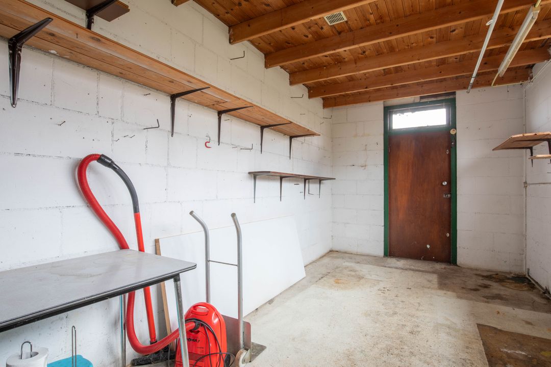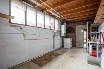 Vanuit de badkamer loopt u door naar de bijkeuken. Hier bevinden zich de aansluitingen voor de wasmachine en de droger en de opstelling van de cv-ketel.