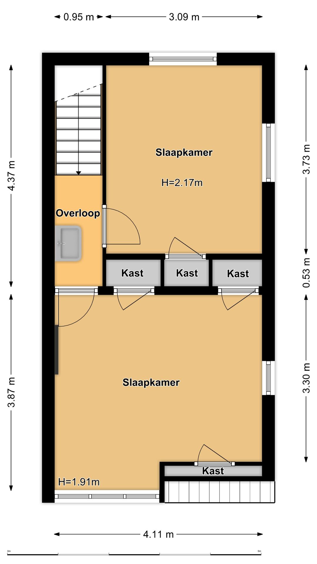 Op de eerste verdieping bevinden zich twee slaapkamers, beide van een prettig formaat.