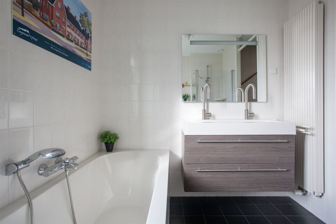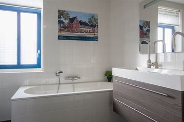 De badkamer: De moderne badkamer is uitgerust met een ligbad, een douche, een brede wastafel met twee kranen, een wastafelmeubel met lades en het toilet. De badkamer is geheel betegeld en heeft een een natuurlijke lichtinval.