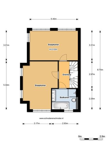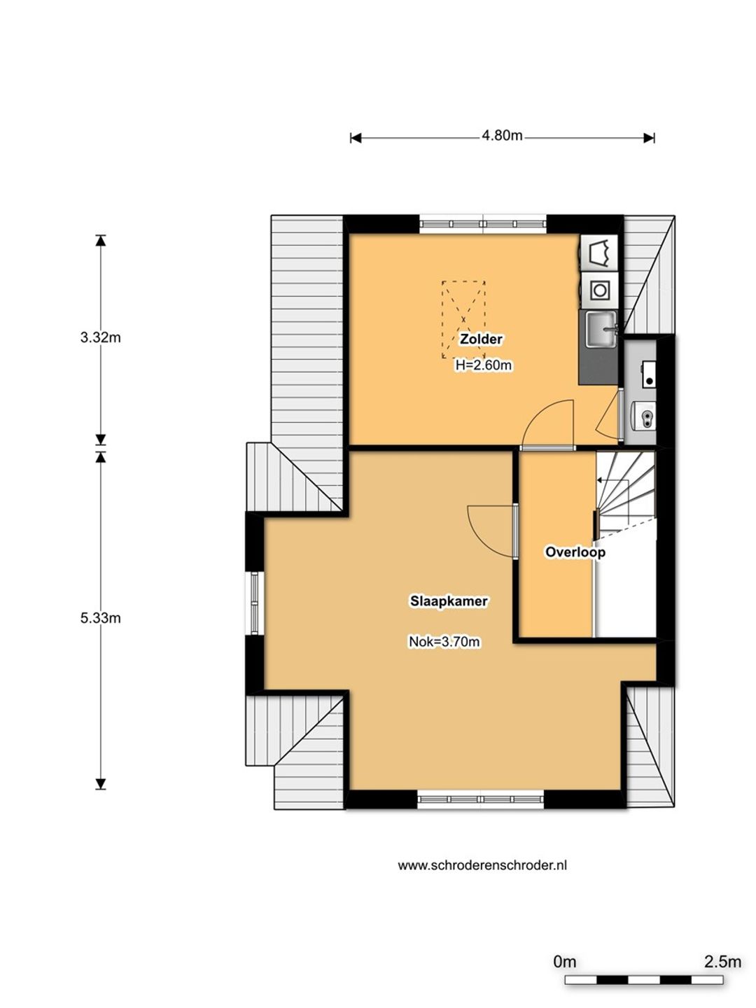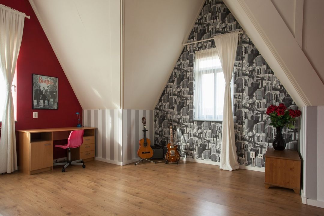 Op de tweede verdieping vindt u nog twee royale slaapkamers. De kamer aan de voorzijde oogt extra ruim, dankzij de hoge nok.