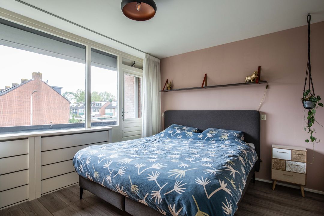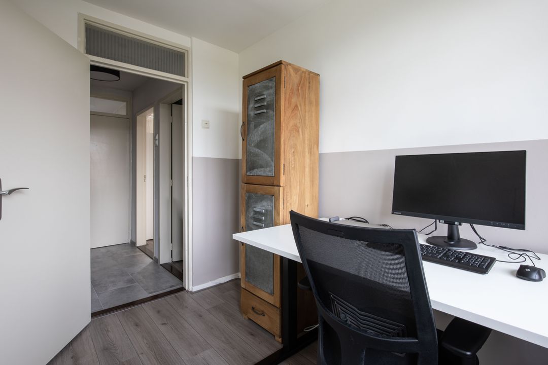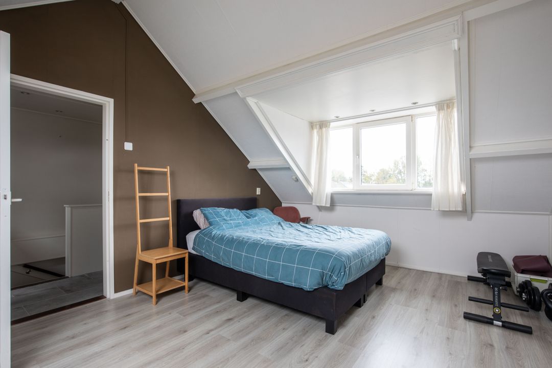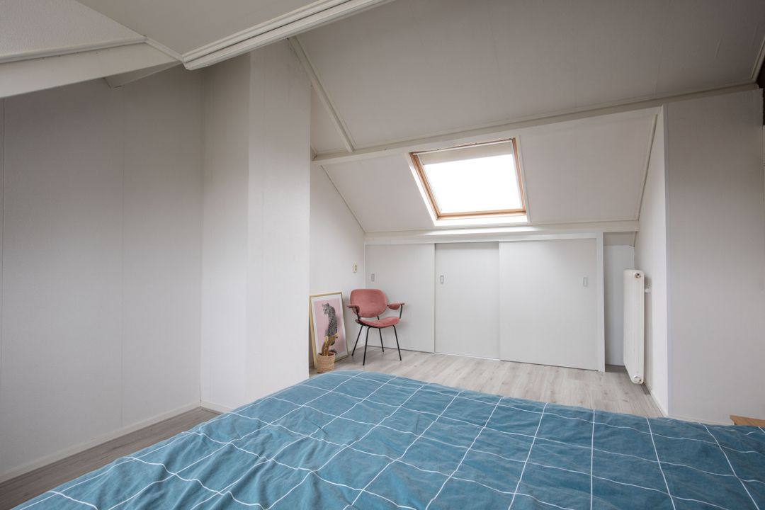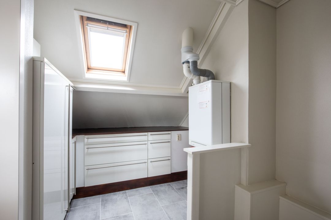 Op de tweede verdieping bevinden zich een ruime vierde slaapkamer en de technische ruimte. Deze slaapkamer is voorzien van een dakraam en dakkapel voor een goede lichtinval. Op de overloop bevinden zich de cv-opstelling en de aansluitingen voor de wasmachine en droger. Tevens treft u hier een aantal praktische kasten.