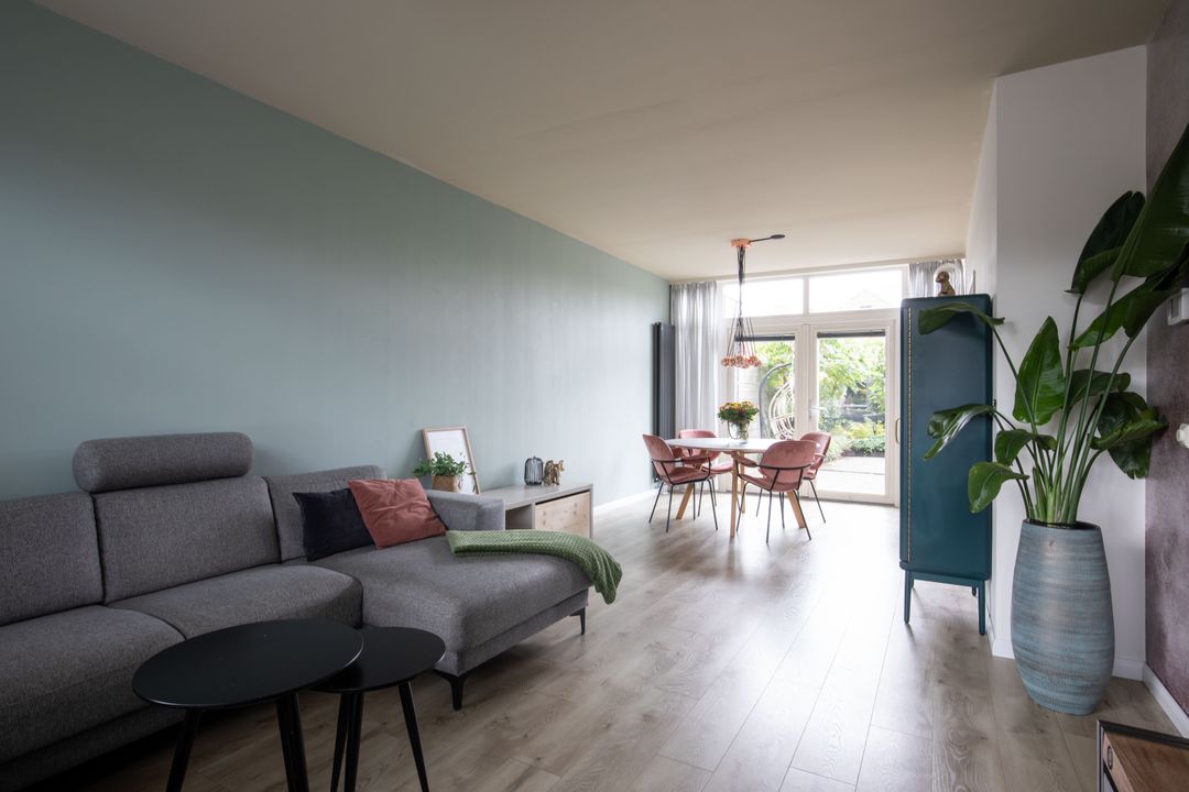 Deze woning verwelkomt u met een warme sfeer zodra u binnenkomt. Op de begane grond bevinden zich de woonkamer, keuken en de hal met toilet. Bij binnenkomst in de woning valt direct de laminaatvloer op, die zorgt voor een warme en sfeervolle uitstraling. De woonkamer is ruim en licht, ideaal voor het ontvangen van gasten of gewoon om heerlijk te ontspannen met het gezin. Vanuit de woonkamer heb je middels openslaande deuren toegang tot de achtertuin, gelegen op het noordwesten. Hier kun je genieten van lange zomeravonden en gezellige barbecues. De tuin is voorzien van een stenen berging voor uw fietsen en andere nodige spullen. En een achterom.