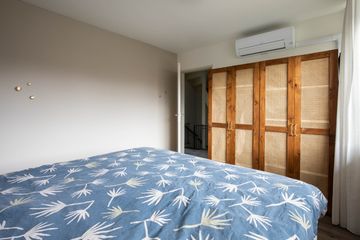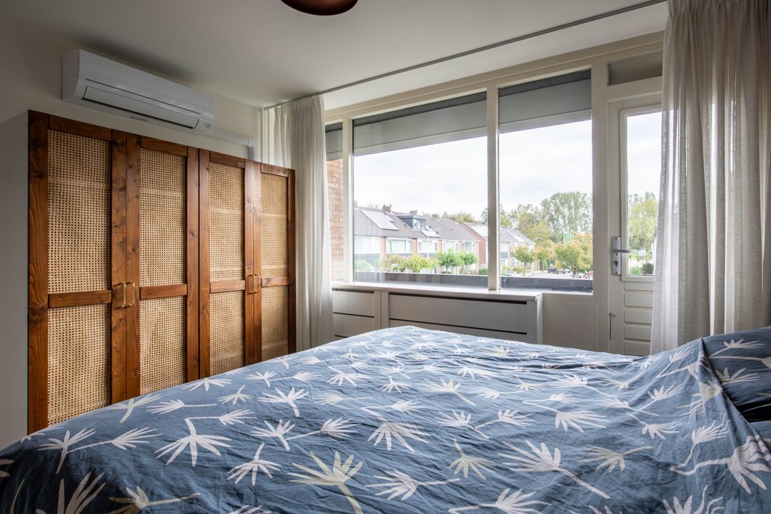 Op de eerste verdieping bevinden zich drie slaapkamers. De master bedroom met balkon heeft zelfs airconditioning, wat zorgt voor een aangename nachtrust tijdens de warme zomermaanden. De tweede ruime slaapkamer is voorzien van een ruime moderne kledingkast voor al uw kleding. De derde slaapkamer is tevens geschikt als werk- en/of studiekamer.