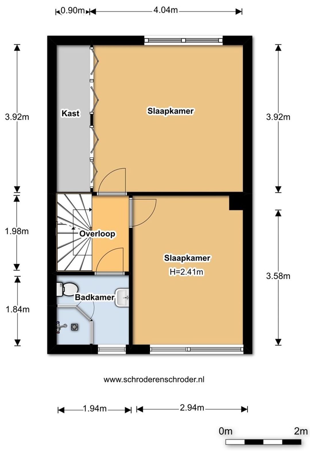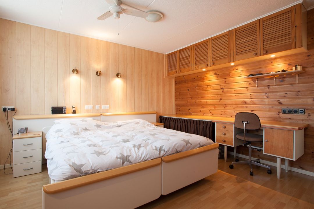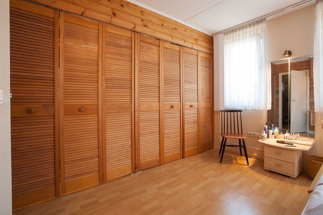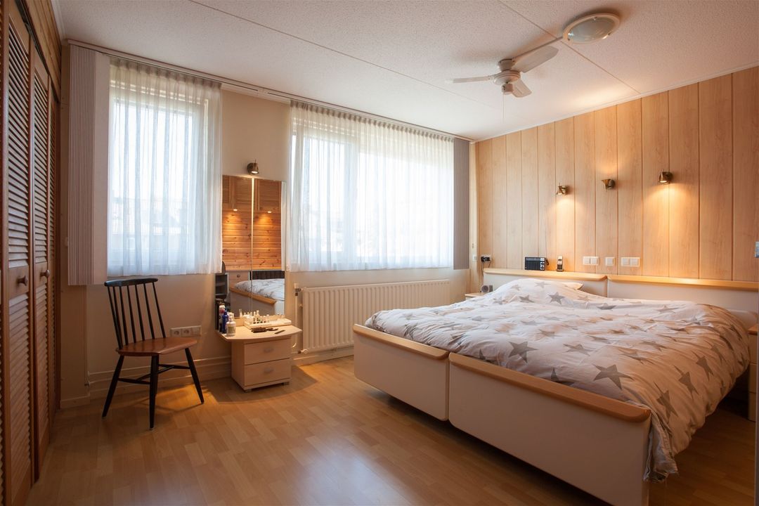 De eerste verdieping heeft in totaal twee slaapkamers en een badkamer. De masterbedroom heeft een nette laminaatvloer en een mooie kastenwand met louvredeuren.
