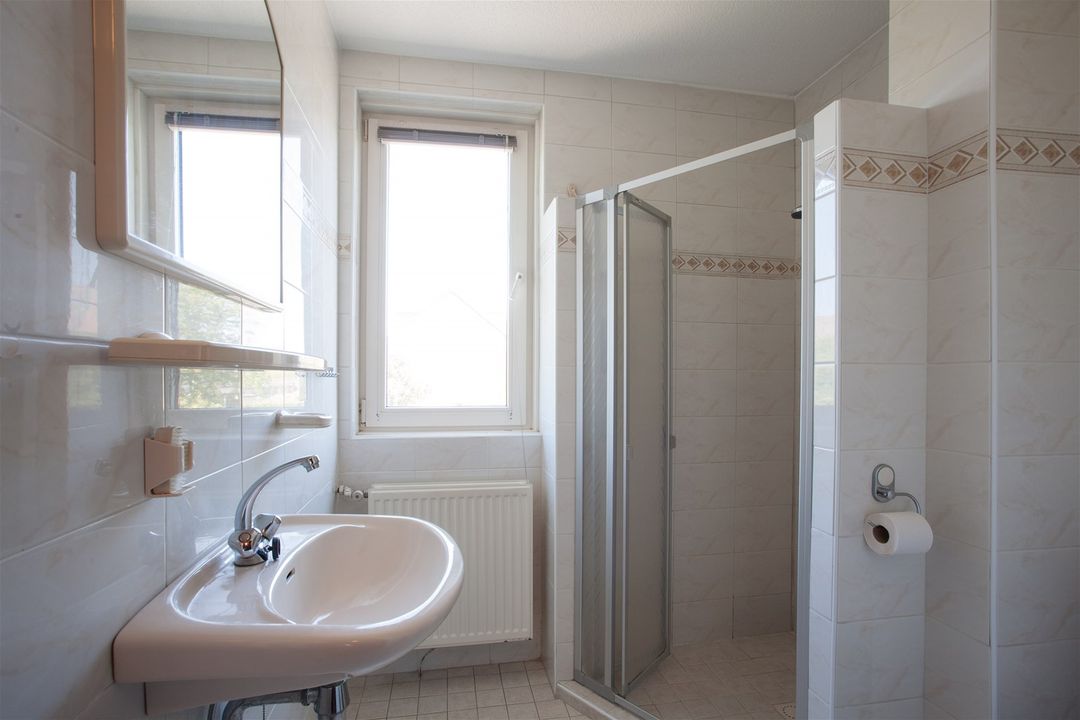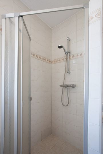 De badkamer is basic maar zeker functioneel. Zo is de badkamer voorzien van een douche, wastafel, tweede toilet en is uitgevoerd in een lichte kleurstelling