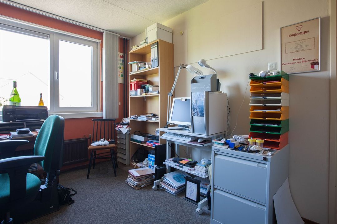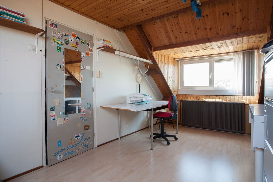 Via de vaste trap op de overloop is de zolderverdieping te bereiken. Op deze verdieping is nog een goede ruimte aanwezig welke gebruikt kan worden als derde slaap- en/of werkkamer. Zowel aan de voor- als achterkant is licht gecreëerd. Aan de voorzijde zit een groot dakraam en aan de achterzijde een dakkapel. Deze dakkapel zorgt voor een ruimtelijker gevoel.