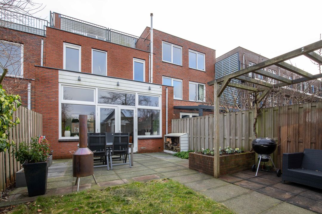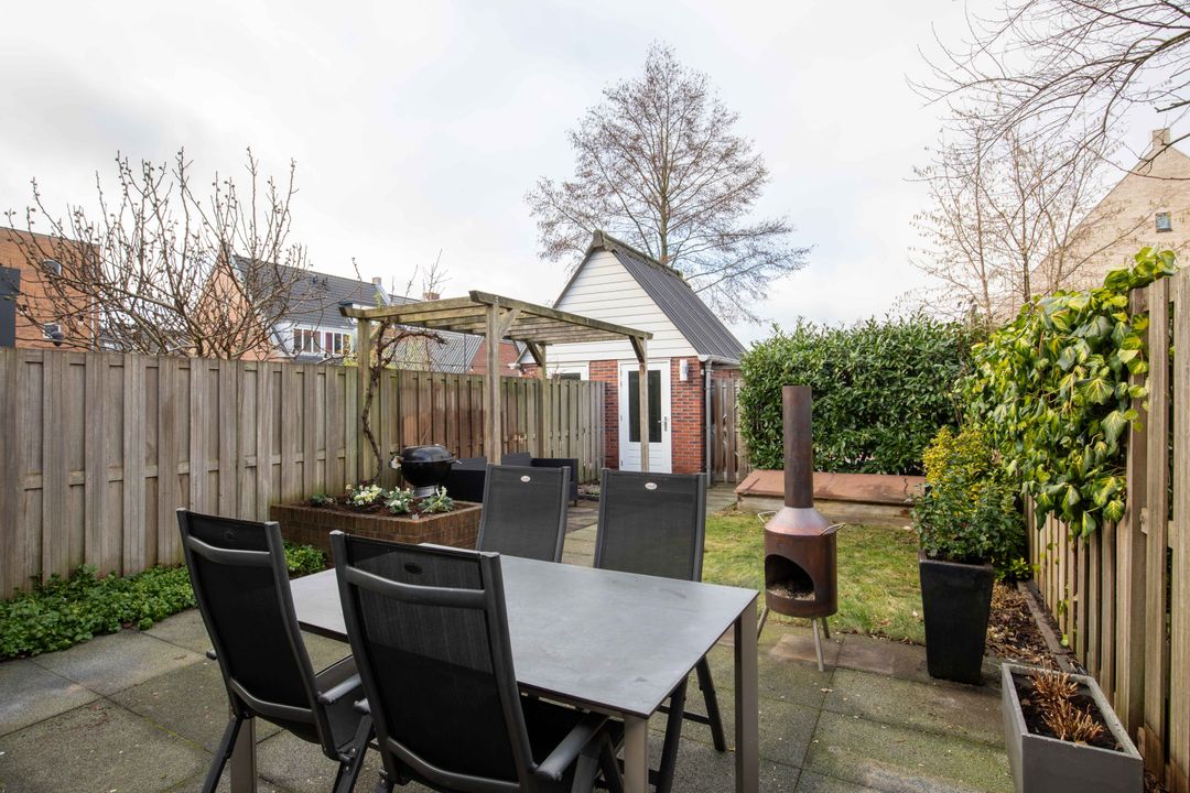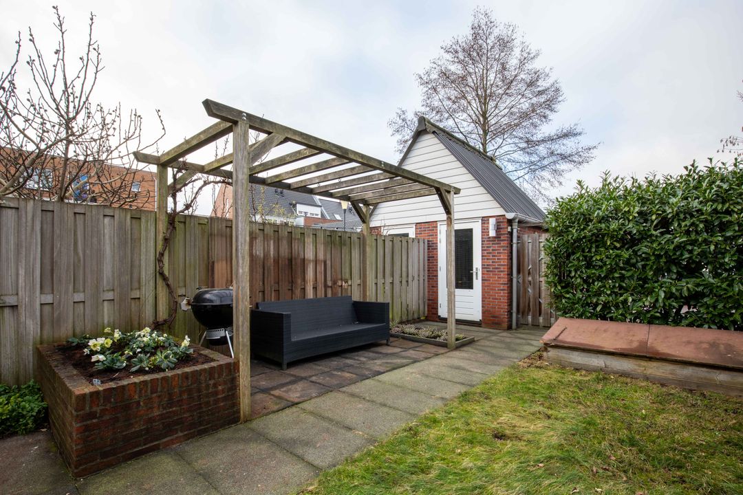 De zonnige achtertuin is op het noordwesten gesitueerd en ziet er werkelijk keurig verzorgd uit. In de tuin bevindt zich tevens een stenen berging met veel opbergruimte. Achter het huis is een parkeermogelijkheid op eigen terrein.
