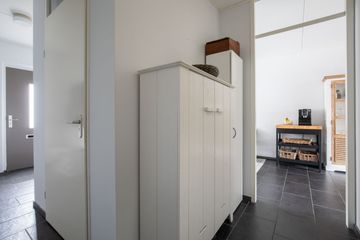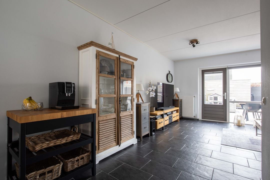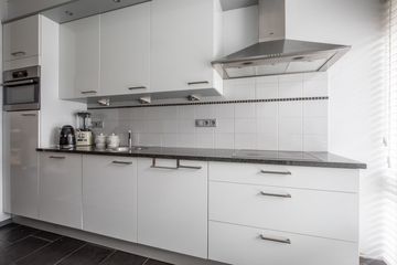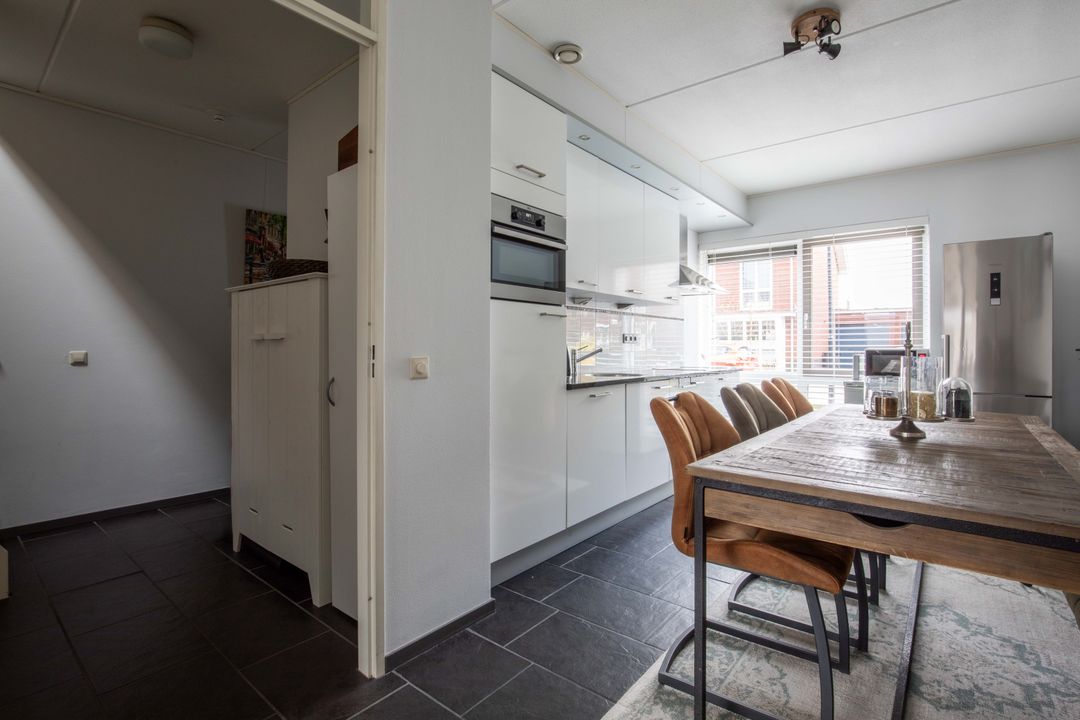 De keuken aan de voorzijde is uitgerust met diverse inbouwapparatuur, zoals een 4-pits keramische kookplaat, een afzuigschouw, een combi-oven en een vaatwasser. De koelkast is los geplaatst in de keuken. Hier is het fijn kokkerellen voor de thuiskok! Er is meer dan voldoende ruimte voor een grote eethoek om gezellig samen te eten.