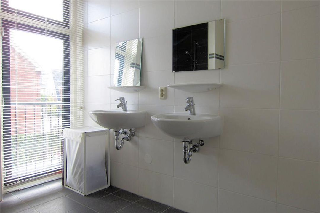 Op de eerste etage bevinden zich twee zeer royale slaapkamers en de ruime en luxe badkamer. Deze beschikt over een fraaie dubbele wastafelopstelling, een designradiator, een (verhoogd) hangend toilet en een inloopdouche.