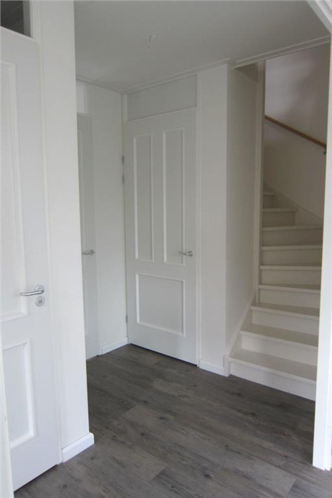 Royale entree, hal, uitgebreide meterkast (12 groepen), luxe hangend toilet met fonteintje en trap naar de eerste etage.